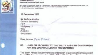 Kiongozi wa maandalizi ya kombe la dunia nchini Afrika Kusini mwaka 2010 ni miongoni mwa maafisa wawili wakuu waliotajwa katika malalamishi