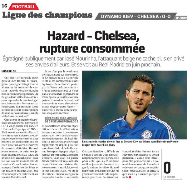 L’Equipe gazeti la nchini Hispania limeandika habari ambayo sio nzuri kwa mashabiki wa timu ya Chelsea likiandika Eden Hazard kaamua kuondoka chelsea mwisho wa msimu huu na kuelekea real madrid.
